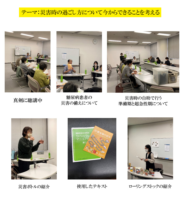11月16日(土)にあざれあの会議室にて行われました。災害時の備えについて、糖尿病患者さんが気をつけるポイントを院長、看護師、管理栄養士よりお話しさせていただきました。薬屋インスリンの管理、食事について今一度今後の備えを考えるきっかけになったでしょうか? |