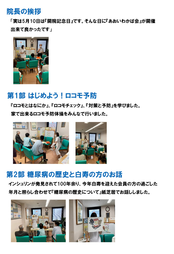 | 呉服町土屋内科では、2006年1月に糖尿病の患者さんを中心とした友の会、「あおいわかば会」が発足いたしました。 |