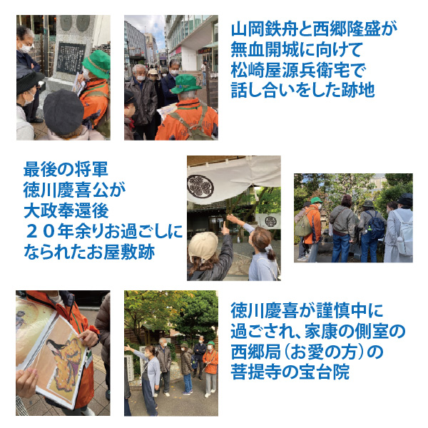 2025年11月8日(土)に駿府ウエイブのガイドさんをお招きし駿府幕末の地を散策するツアーを開催しました。穏やかな秋晴れの中、静岡市内の街中を巡り5人の会員の方にお集まりいただき、楽しい時間を過ごすことができました。幕末に歴史に名をはせた人物が駿府の地で新たな時代に向けて尽力していた事実を知り興味深いお話をじっくりお聞きすることが出来ました。 |