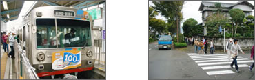 | 県立美術館前の駅から、芝生公園までは15分ほどの上り坂ですが、通り沿いのおしゃれなお店を眺めつつ、みんなで 話をしていたら、あっという間に到着しました。 |