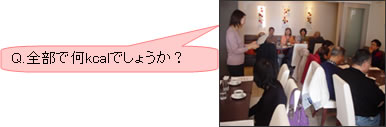 | 楽しんでお料理を堪能できると思いきや・・・栄養士より宿題が出され、後で発表してもらうことになりました。 |