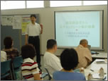 | 今回は「足ピカピカ」と題し、昨年皆さんに協力して頂いた足チェックの集計をもとに、糖尿病患者さん に多い足のトラブルを踏まえながら、日常生活の注意点や実際のフットケアの方法について説明がありました。 |